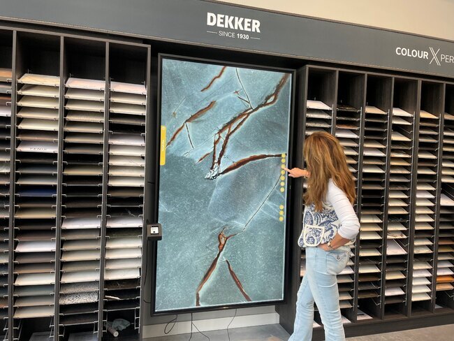 Möchten Sie wirklich sehen, wie eine Arbeitsplatte aussieht? Mit der ColourXperience von Dekker Zevenhuizen betrachten Sie jede Platte in Originalgröße – inklusive Farbe, Struktur und Oberfläche. Keine kleinen Musterstücke, sondern ein vollständiges Erlebnis des Materials, so wie es in Ihrer Küche wirken wird.