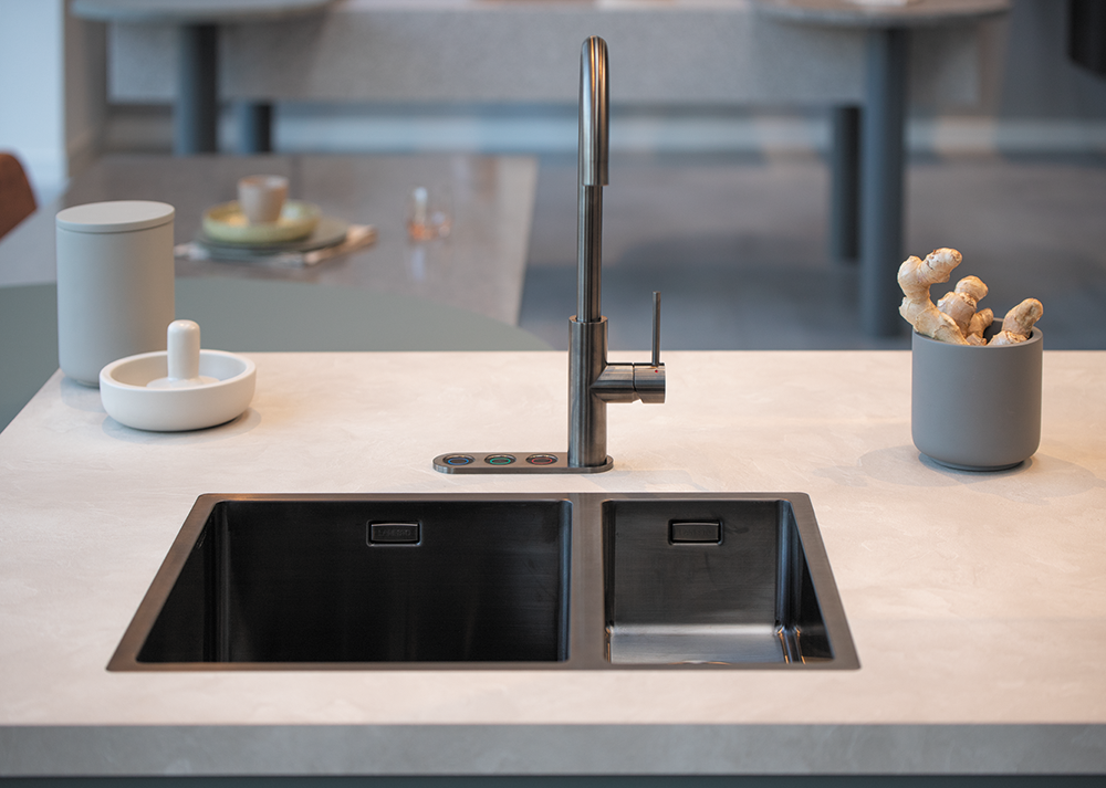 Dekker Zevenhuizen ist nicht nur Hersteller verschiedenster Arbeitsplatten, sondern seit Jahren auch im Bereich Zubehör (Spülbecken, Armaturen, Rückwände) tätig. Das zunächst als reiner Großhändler, heute aber mit eigenen Produktlinien. Van der Velde hierzu: „Vor einigen Jahren haben wir unser eigenes Label Lanesto entwickelt, basierend auf der Idee, dass unsere Accessoires mit den von uns gelieferten Arbeitsplatten designtechnisch wirklich in Einklang sein sollen. Eigene Produktentwicklung erfordert eine andere Arbeitsweise: ‚,und plötzlich organisiert man alles selbst.“ Wir machen das jetzt mehr als zehn Jahre. Und heute können wir die Früchte dieser Arbeit mit einem ansehnlichen Wachstum ernten. Als Dekker wollen wir der erste Ansprechpartner für den Fachhandel sein, indem wir alles um die Arbeitsplatte herum anbieten können. Gerade wenn man mit Design und Trends zu tun hat, ist das essenziell. Eine Arbeitsplatte bleibt nun mal die Visitenkarte einer Küche.“
